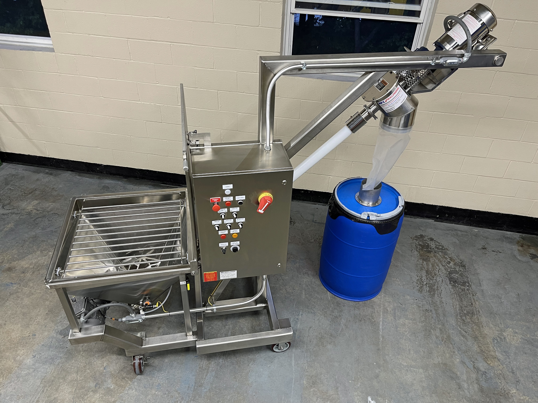 • Custom agitator – consistently feeds the flour to the screw