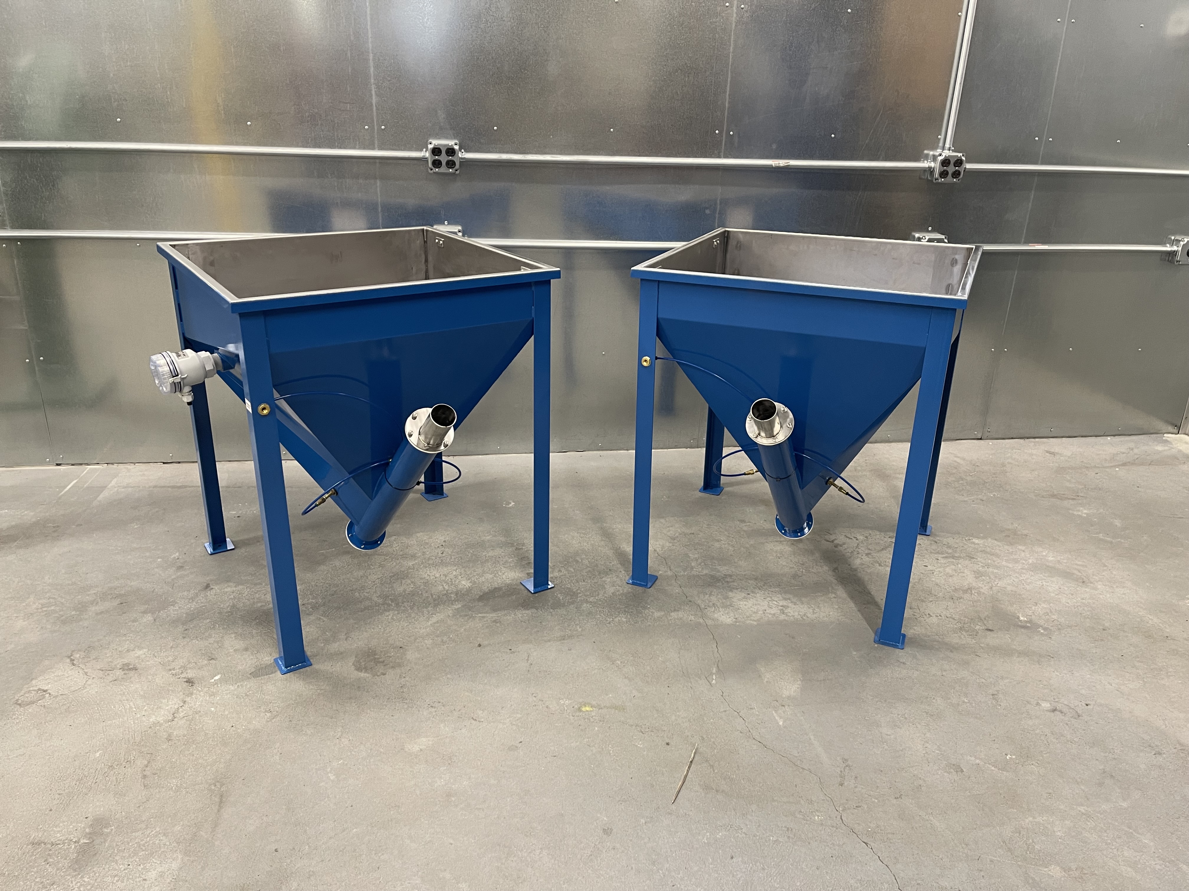 • Hopper with vibrator – promotes consistent flow without sticking to walls